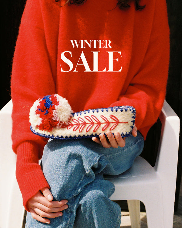 Die Verzierungen an der Seite der Wollhausschuhe von GIVE A PON werden von griechischen Frauen handgestickt. Sie machen die Stickereien zu Hause, im Garten, auf der Couch - zu einer Zeit, die ihnen gut passt.